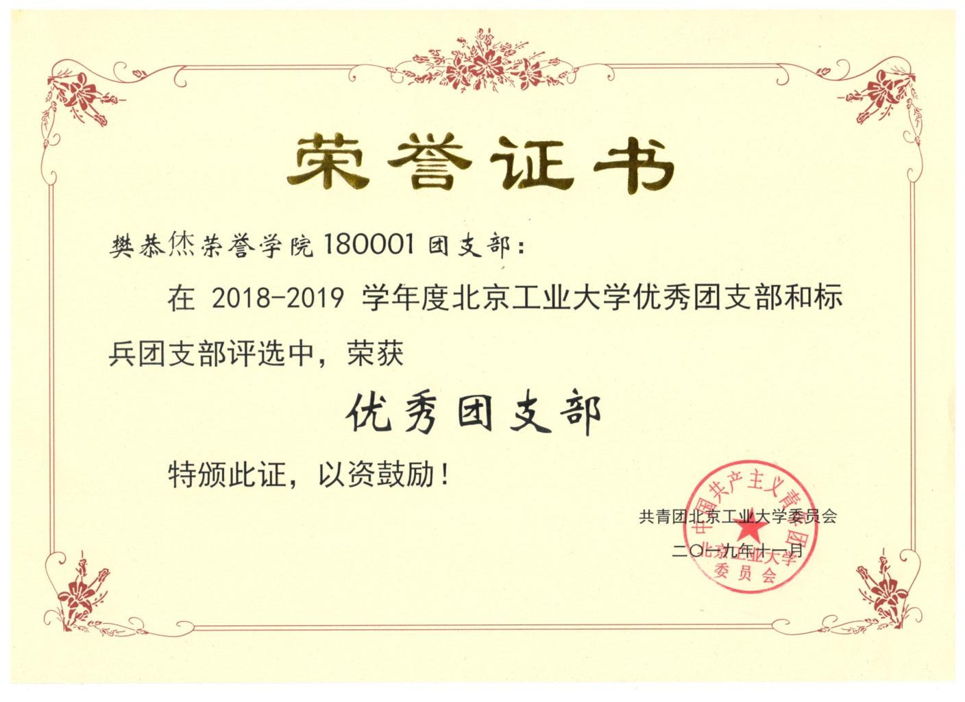 180001团支部 荣获 优秀团支部