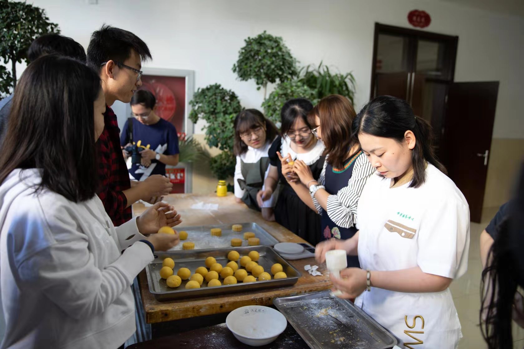 团委在活动筹备过程中积极与各方沟通联络,为同学们争取到了亲自体验月饼制作过程的机会。本次集体生日会以“工大月饼DIY”的形式开展,别样的“家人”欢聚一堂,吃亲手做的月饼,一同感受“家”的温馨。