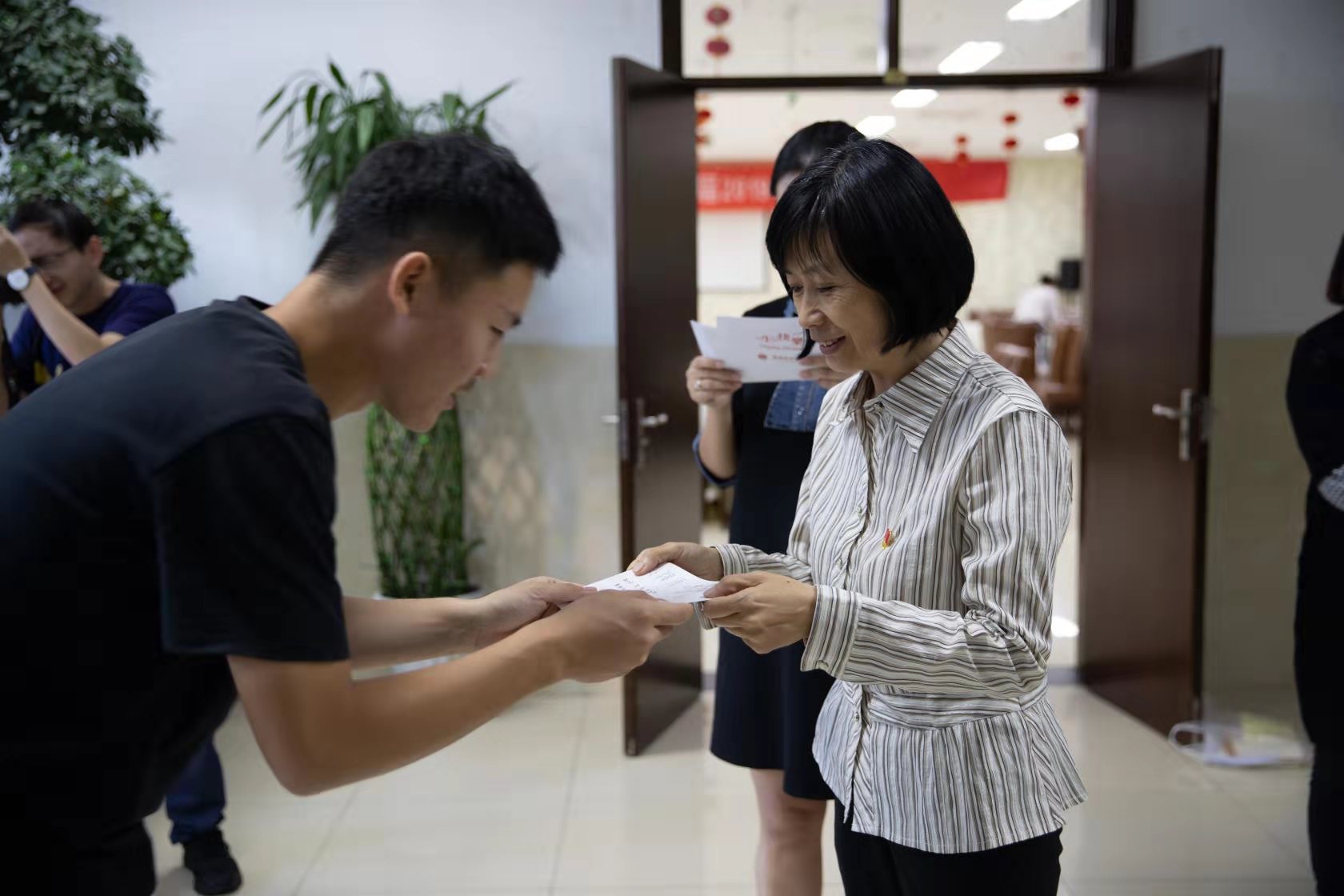 的同学们和后勤党委学生社区党支部的党员同志们以校为家,爱校爱家,王丹院长也为同学们送上了别出心裁的生日贺卡。最后,同学们与老师一同分享了刚出炉的月饼,并将剩余的月饼包装密封带给自己的好朋友,收获的喜悦更为嘴里的月饼增加了一丝甜意。