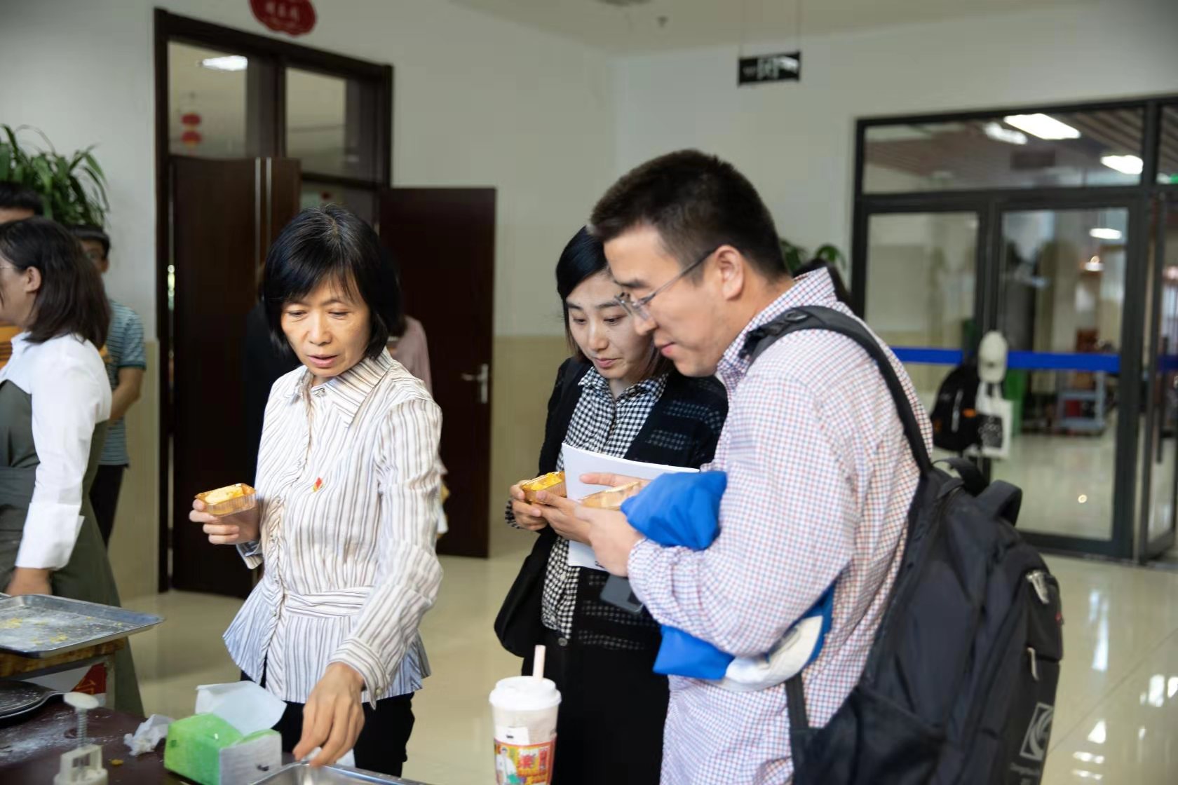 ”和“BJUT”等字样整齐地出现在月饼上,成功的喜悦溢于言表,整个会场充满了欢声笑语,大家迫不及待地将月饼们送入烤箱。