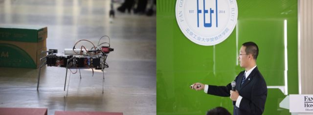 工作进行了简要回顾。在Cornerstone项目展示环节中,2014~2015学年Cornerstone项目的八个小组分别进行汇报,精彩的演示十分吸引观众眼球,评委老师及在场同学频频发问,与项目组成员展开了热烈的探讨。其中仿生六足爬行机器人、绘图机器人、智能灯光控制系统及其延展这三个项目团队分获前三名。