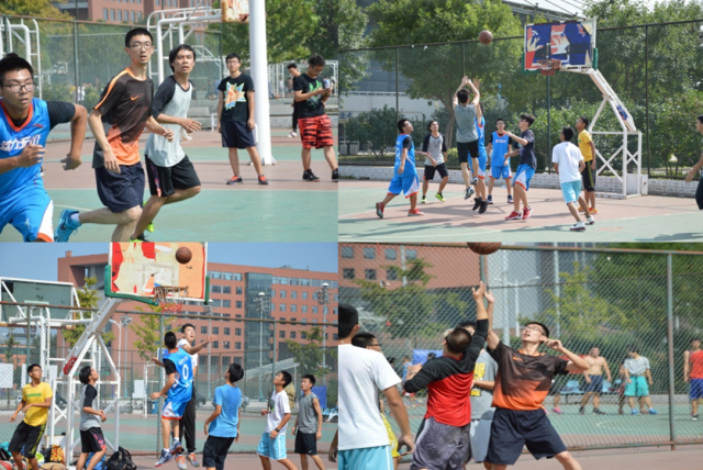 2015年新生篮球友谊赛在西侧篮球场拉开序幕,15级新生和14级老生进行了激烈的对抗。