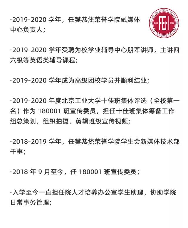 ·以技术赋能班级建设,融媒体中心连续3年制作十佳班集体申请视频,2次荣获校内第一名并荣获北京市“十佳示范班集体”。