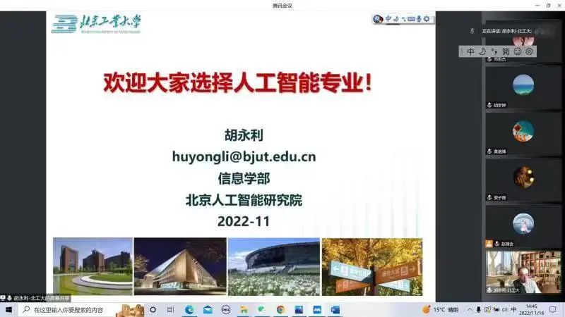 胡永利教授为同学们带来了人工智能相关方向的介绍。胡教授首先详细地介绍了人工智能的发展历史及其对当今社会发展的重要作用,阐明了人工智能专业不但拥有宽广的就业前景,而且能成为同学们实现个人价值的舞台。接着又介绍了AI人才的培养目标,展示了AI技术未来在各行各业中的应用。胡教授表示,我们要培养具有优秀专业能力与道德品质的AI人才,人工智能一定能带领同学们走向更加光明的未来。