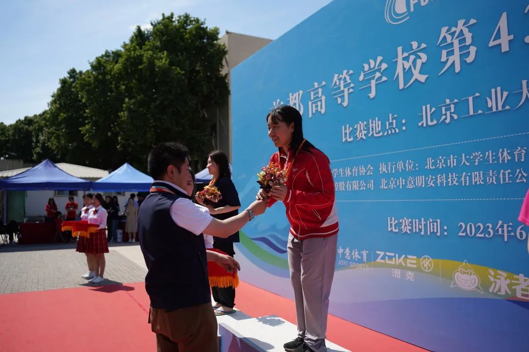 6月3日,2022级胡梦婷同学代表我校参加“首都高校游泳比赛”,在赛场上勇攀高峰,壮志冲云,取得了优异的成绩!她不仅个人成绩获得了女子乙组50米蝶泳第一名(破纪录)、 女子乙组100米蝶泳第一名(破记录),更是在4×50米男女混合泳接力中为我校夺得第一名的金牌!