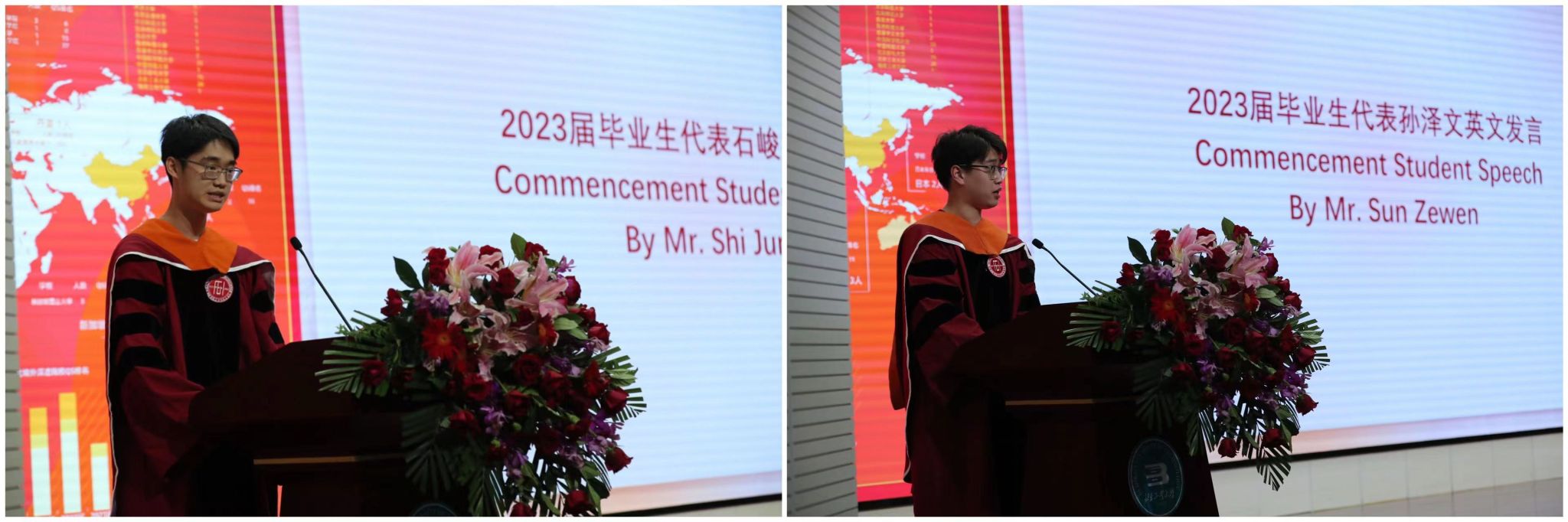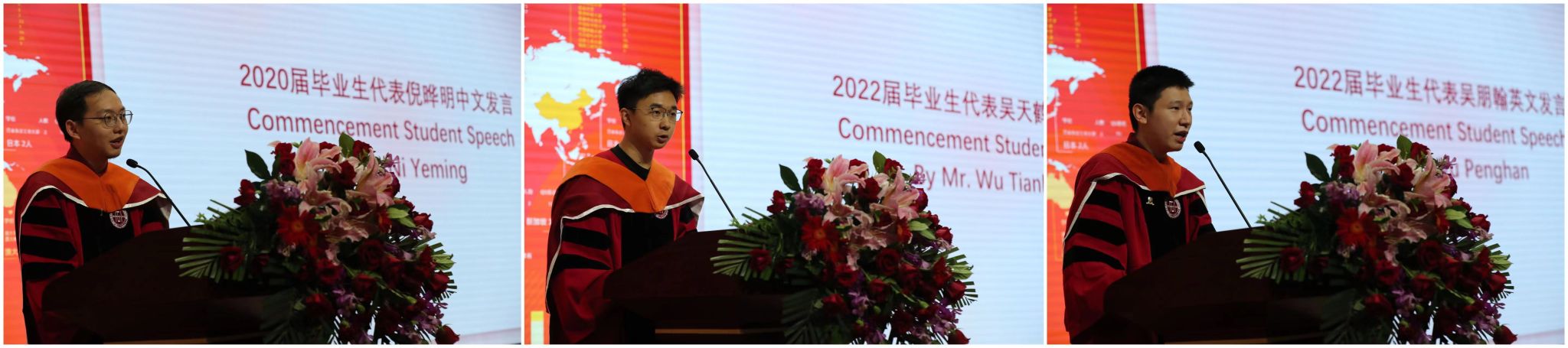 2020届毕业生代表倪晔明,2022届毕业生代表吴天鹤、吴鹏翰同学中英文发言中以自身读研历程中的所见所闻所感,风趣幽默地为大家分享了关于未来研究生生涯的几点建议,帮助大家能够更好的看清自己在读研期间的真实诉求,适应本科到研究生的转变。同时也鼓励大家加强集体责任感,珍惜、尊重身边愿为集体大家庭付出的每一个人。