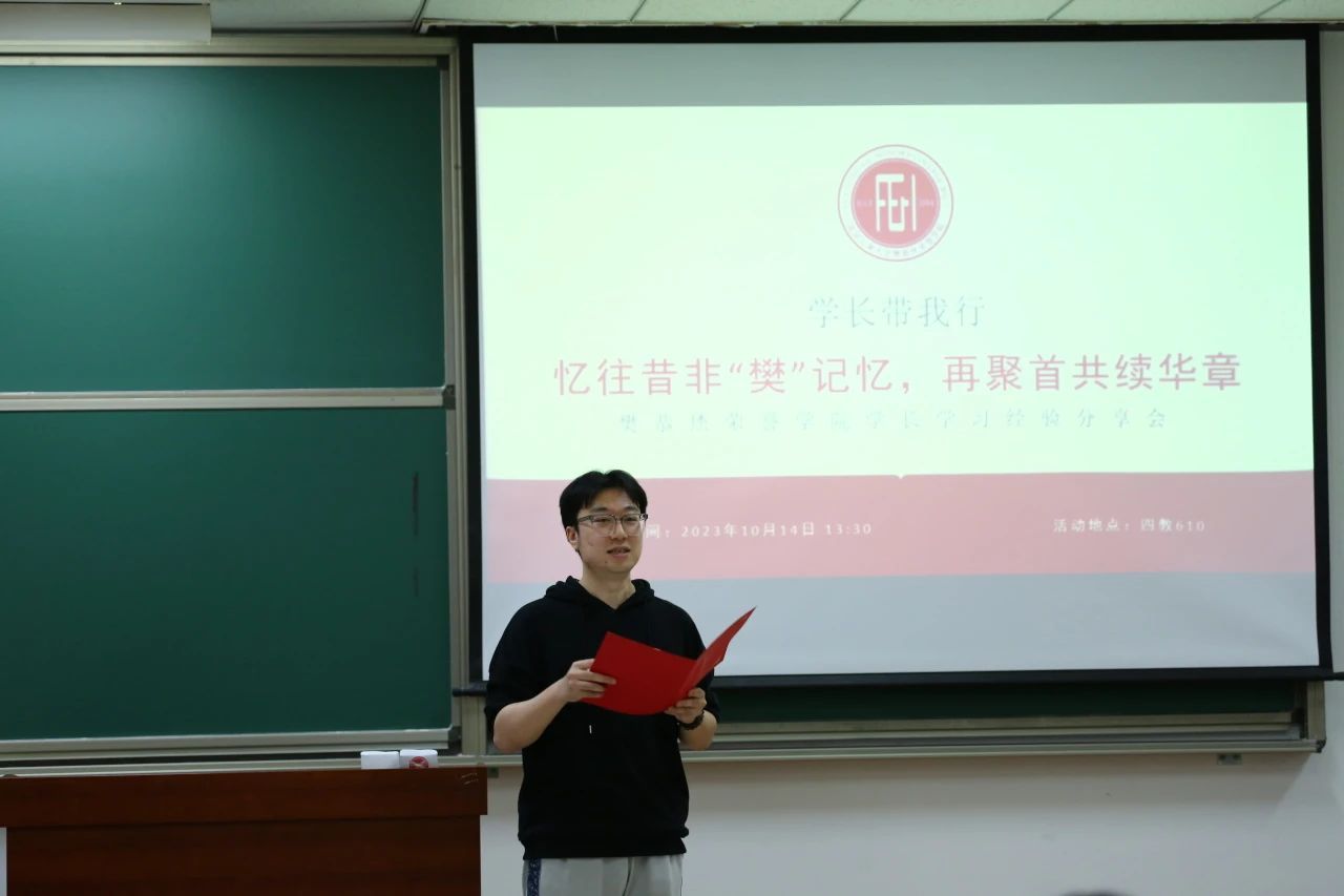 有着深厚的情感连接和身为“樊院人”的荣誉感。同时,他介绍了分享会的具体活动和内容,希望樊院同学们通过这次与校友相互深厚交流的绝佳机会,建立联系,启发思路,开拓人脉,为未来的学术和职业生涯打下坚实基础。