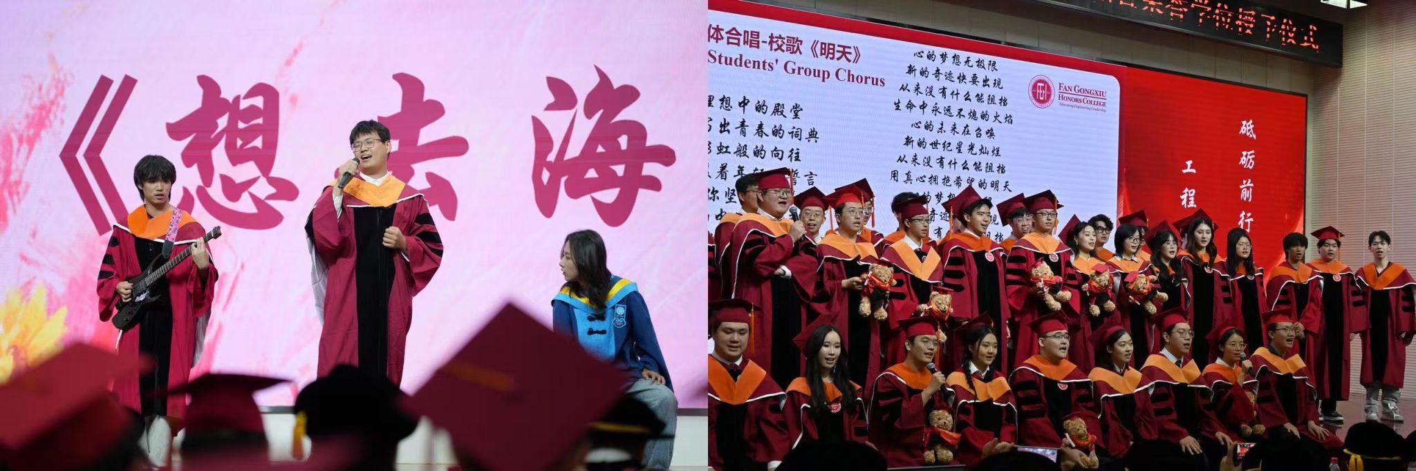 典礼的最后,2025届毕业生们带来了两首悠扬的歌曲,悦耳的歌声尽显恣意的青春风采,伴随着最后的曲目——爱情岛