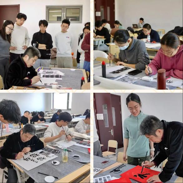 活动的开始,范教授为同学们细致解读中国书法一脉相承的文化精髓。他结合竹简、碑帖的珍贵资料,娓娓道来书法艺术从先秦篆书、秦汉隶书,到楷书、行书、草书的流变脉络与审美意趣,深刻阐释了 “书画同源” 的内涵,点明书法的线条亦是富有生命力的艺术表达。随后,范教授对比中西方构图审美之差异,结合民间福字的创作要义,细致剖析中式美学里疏密有致、气韵贯通的独特章法。深入浅出的讲解,让同学们深切体悟到中华文化沁润人心的独特魅力,感受根植于民族血脉的文化脉搏。