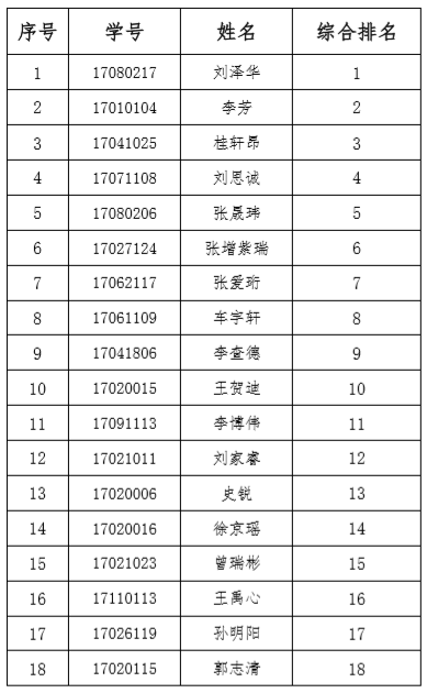 推免综合排名,确定了2021年本科生推免名单为以下18名同学,现公示如下: